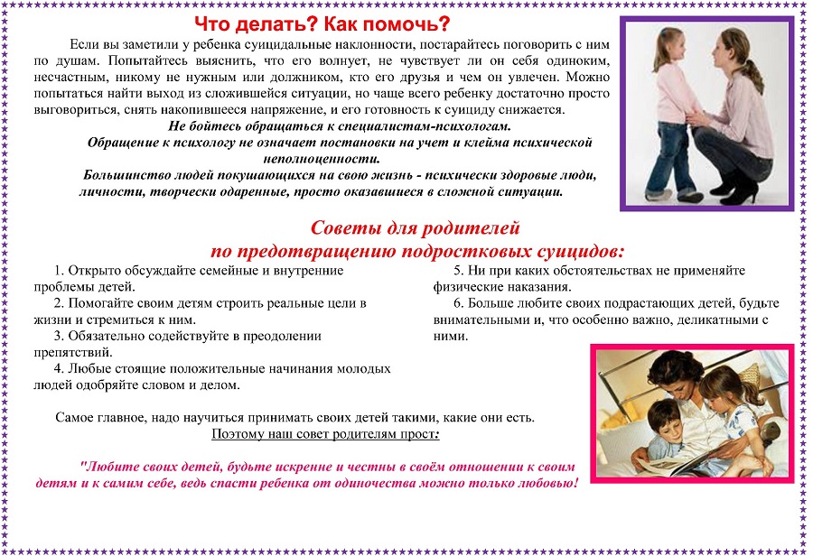 Поддержка близких. Внимательно выслушивайте ребёнка и вникайте во все проблемы, о которых он вам говорит. Не высмеивайте его, не унижайте, не приводите в пример тех детей, у которых получается лучше справляться с обучением в школе. Это приведёт только к замкнутости, скрытности, раздражению, нежеланию рассказывать родителям о своих волнениях.